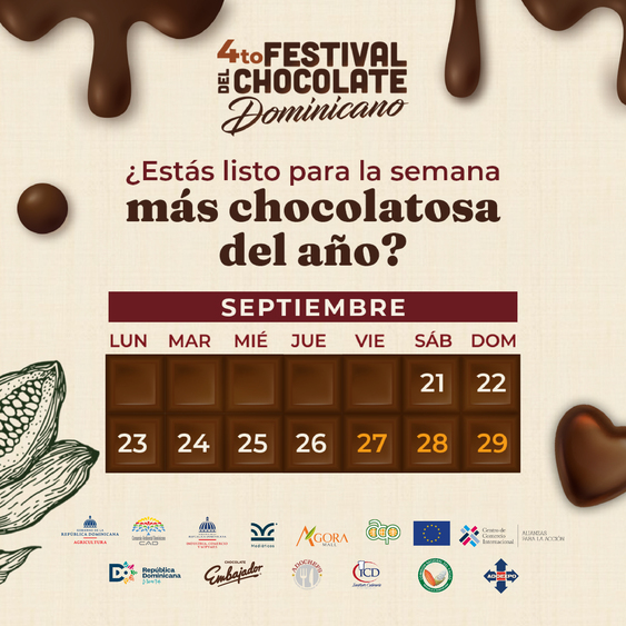 Santo Domingo, Rep. Dom.– Del grano a la barra, la República Dominicana celebrará su excelencia en la producción de chocolate con la cuarta edición del Festival del Chocolate Dominicano, que se llevará a cabo del 21 al 29 de septiembre de 2024.