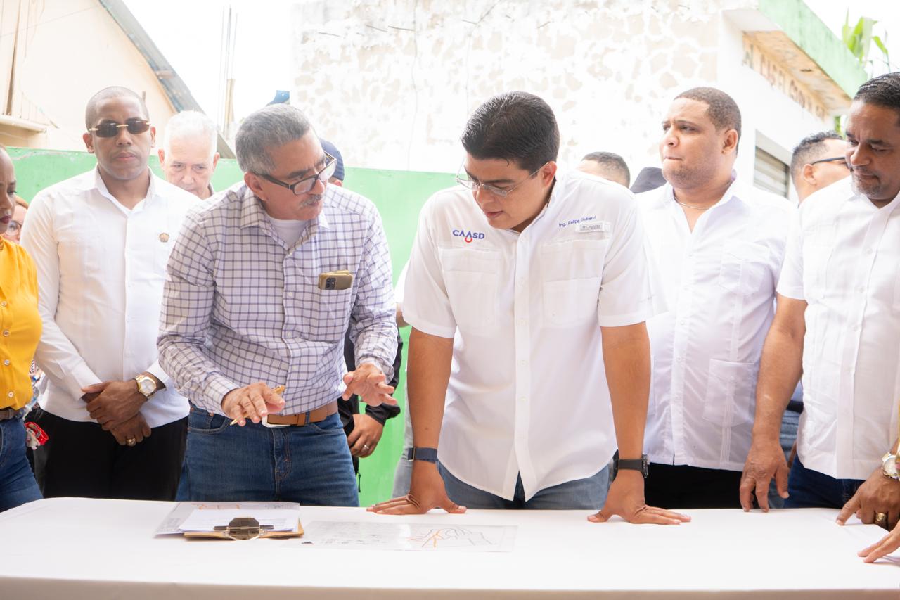 En el sector Sávica, en Los Alcarrizos, inspeccionó los trabajos de un sistema de impulsión (booster) y la instalación de más de 3,300 metros de tuberías, junto con 372 acometidas.