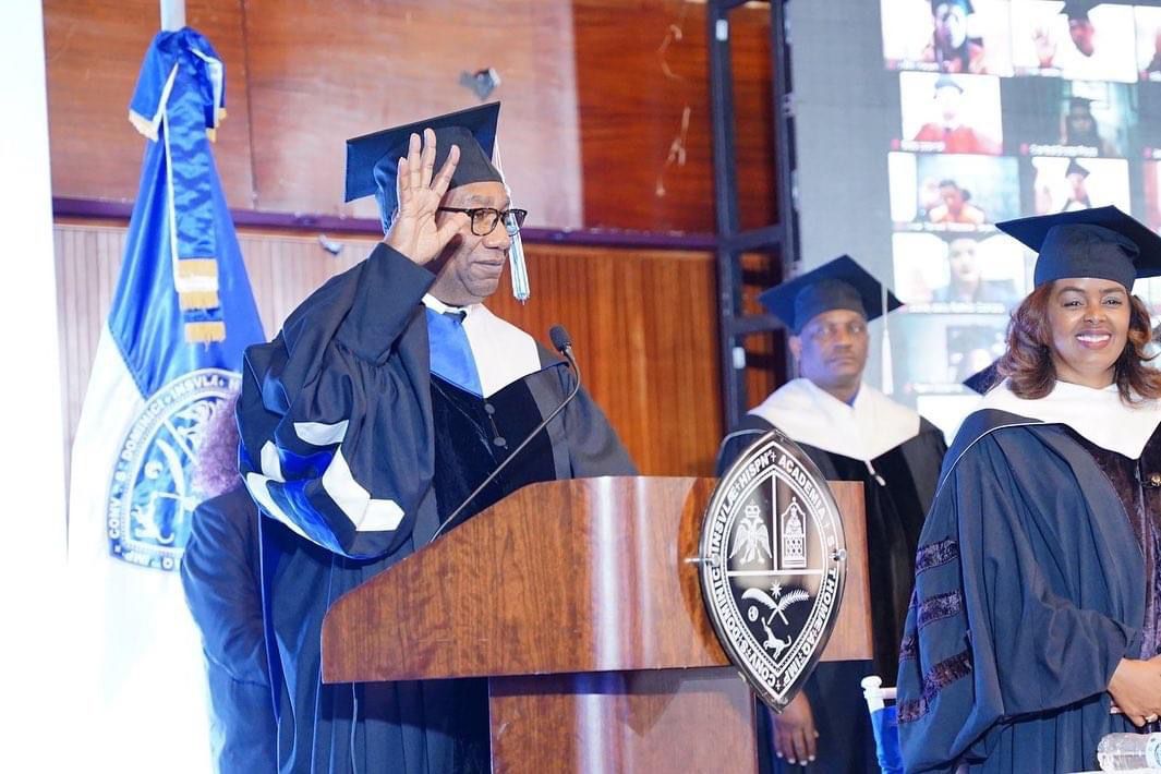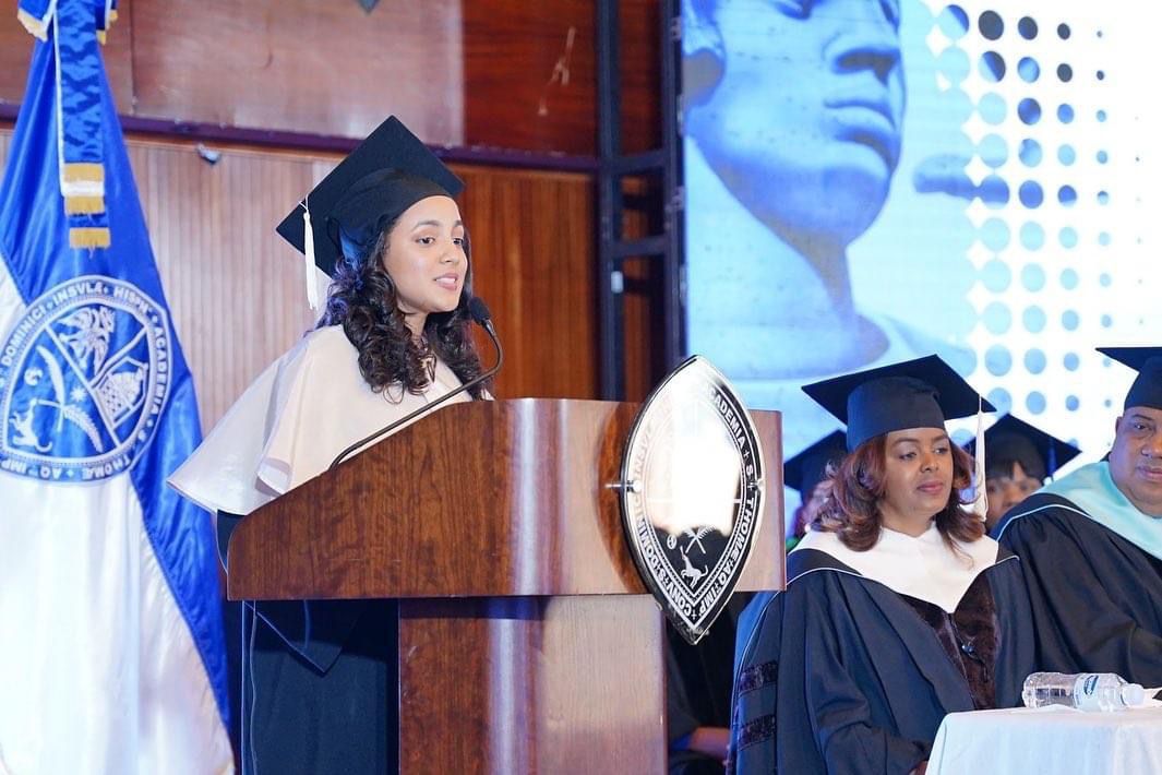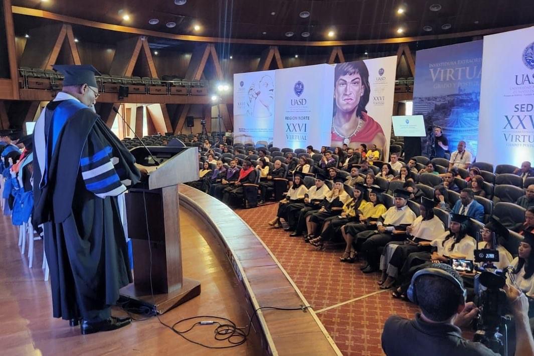 En el acto de investidura presidido por el Consejo Universitario, encabezado por el Rector Magnífico de la Universidad Autónoma de Santo Domingo, Mtro. Editrudis Beltrán, los miembros del Consejo Universitario, incluyendo al Dr. Roberto Marte García, director general UASD-SFM, Delis Nikol Ortega Ramírez pronunció el discurso en nombre de sus compañeros graduandos.