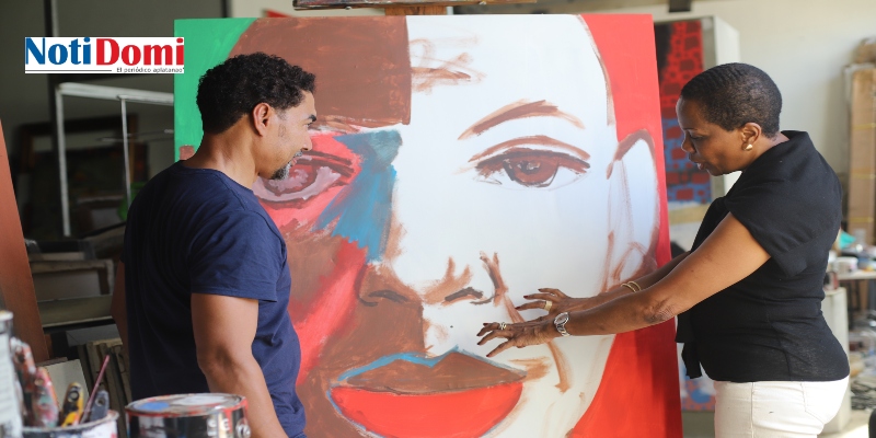 El pintor Oscar Abreu inmortaliza a Magalie Adolphe Racine en una obra de arte