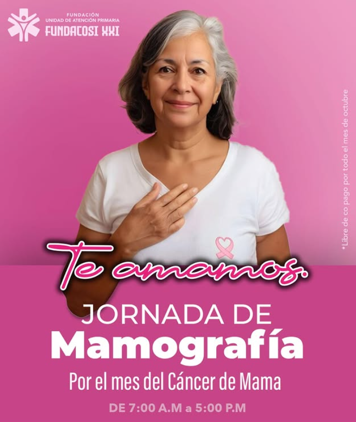 Con motivo al Mes de la Sensibilización del Cáncer de Mama, en Fundacosi XXI se han estado realizando charlas orientadoras y realizando mamografías totalmente libres de copago.