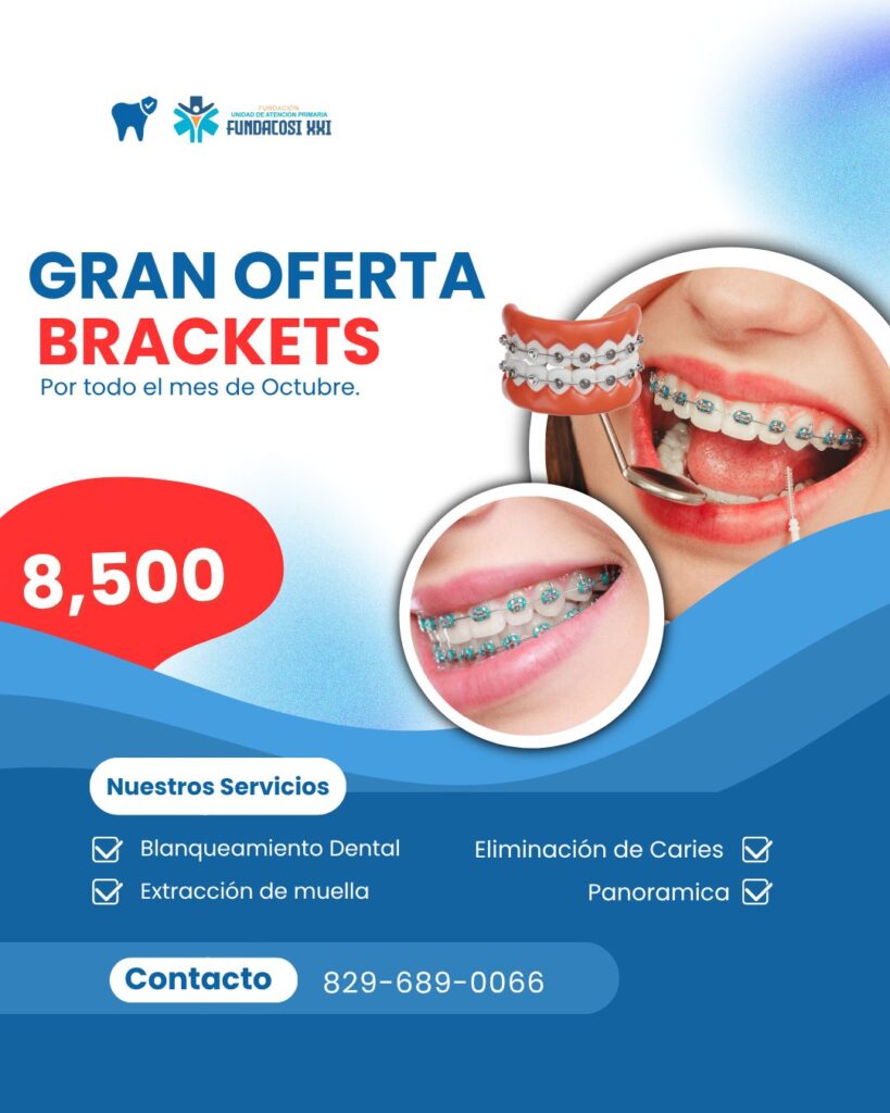 Actualmente, tiene una oferta en la postura de brackets, a través de la cual por tan solo RD $8,500 pesos, podrás darle una mejor sonrisa a tu boca.