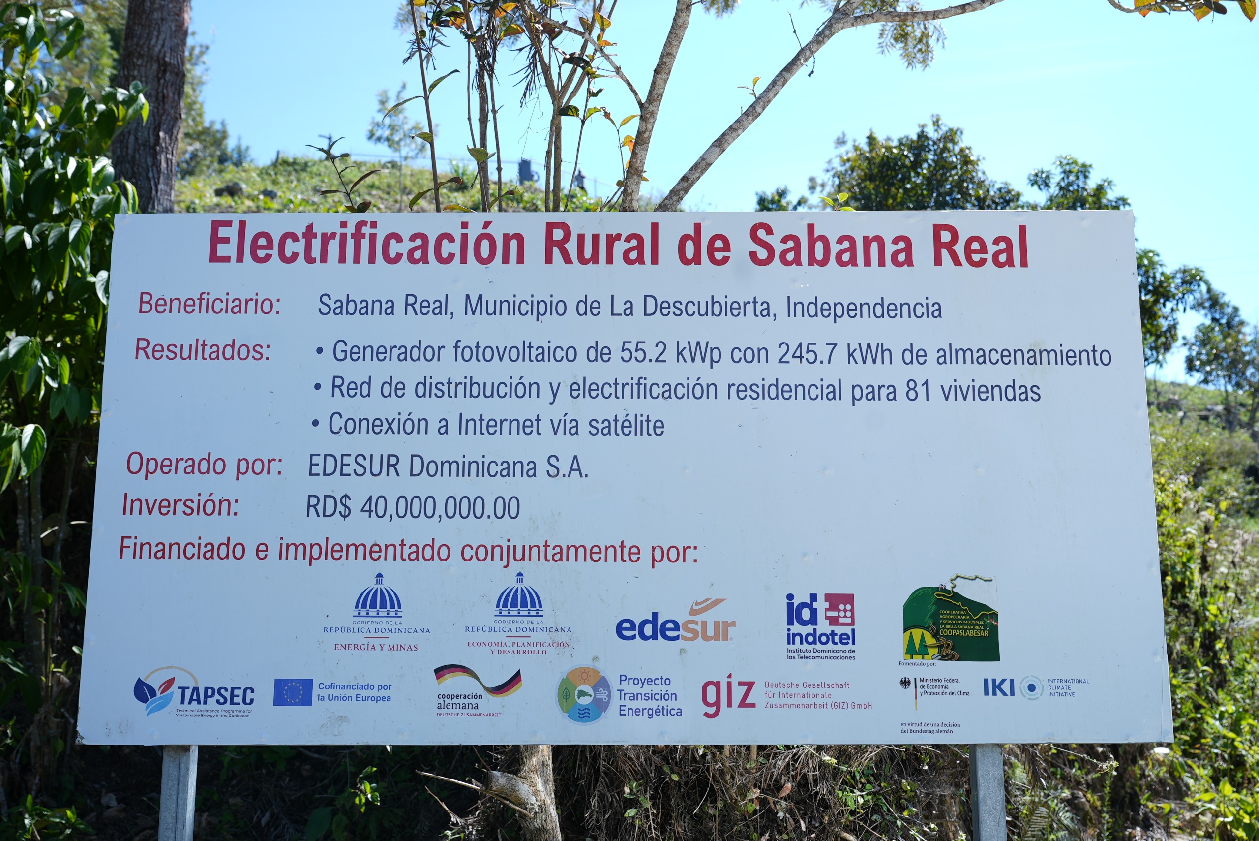 Mientras que, el director del Proyecto Transición Energética y Euroclima Caribe (GIZ), Lemes Findeisen, quien lideró los trabajos de edificación de la red, dijo que es de mucha satisfacción para esa organización ver la alegría que ha representado para Sabana Real tener electricidad por primera vez, después de 70 años de existencia de esa comunidad.