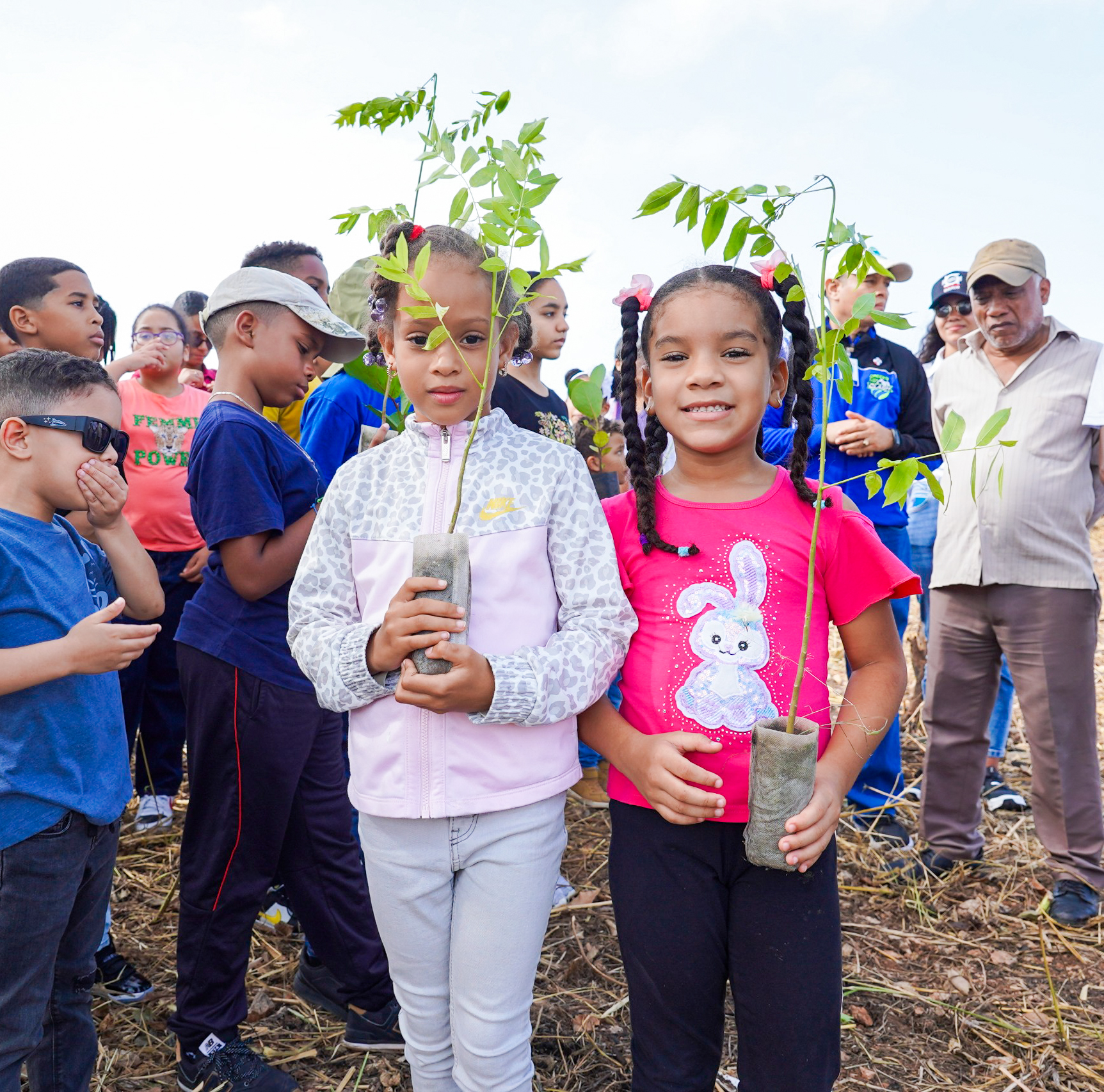 Santo Domingo Este.- Como parte del compromiso con la preservación de los recursos naturales y la concientización medioambiental, el Instituto Nacional de Recursos Hidráulicos (INDRHI) organizó una actividad de integración donde hijos de colaboradores alcanzaron sumar 500 plántulas de uva de playa y cedro blanco al ecosistema boscoso del municipio Santo Domingo Este.